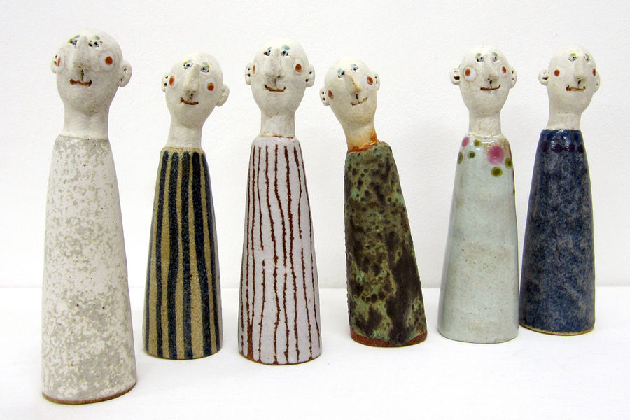Die Münder geschlossen, sprechen diese Figuren doch beredt zu uns. Fast hört man noch das eben verhallte Wort, ahnt das leise Tuscheln und Kichern. Obwohl ohne Arme und Beine, erwecken diese Figuren keineswegs den Eindruck von Passivität, von Gefangensein in einem reglosen Körper oder vom hilflosen Verharren in einem ereignislosen Leben. Diese kleinen Wesen sind glücklich an dem Ort, an den sie ihr Schicksal gestellt hat, sind zufrieden, fast demütig, und harren zuversichtlich - nicht ohne Neugierde - der Dinge, die da kommen.