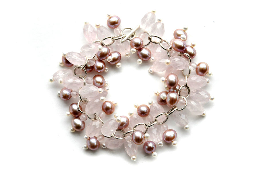 Silja Böhm zaubert ihre Schmuckstücke vor allem aus handgefertigten Glasperlen, die sie trickreich in silberne Ketten einhängt. Gerne kombiniert sie diese auch mit kleinen, bunten Edelsteinen und Süßwasserperlen. Die Farben und die ganze Machart hat immer eine spielerische Komponente, wirkt leicht und unbeschwert.